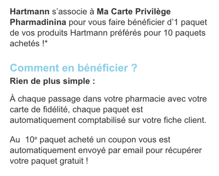 Le programme de cagnottage intégré Hartmann Confiance x Ma Carte Privilège Pharmadinina